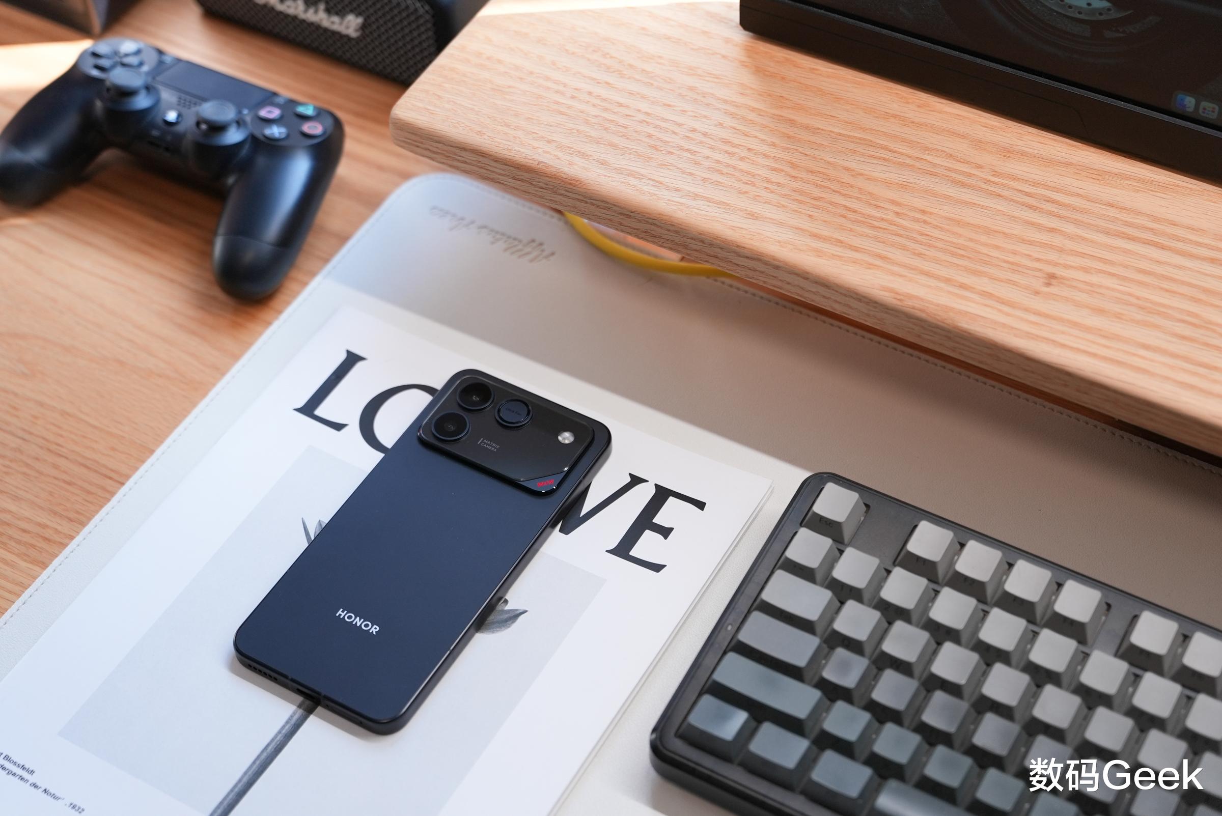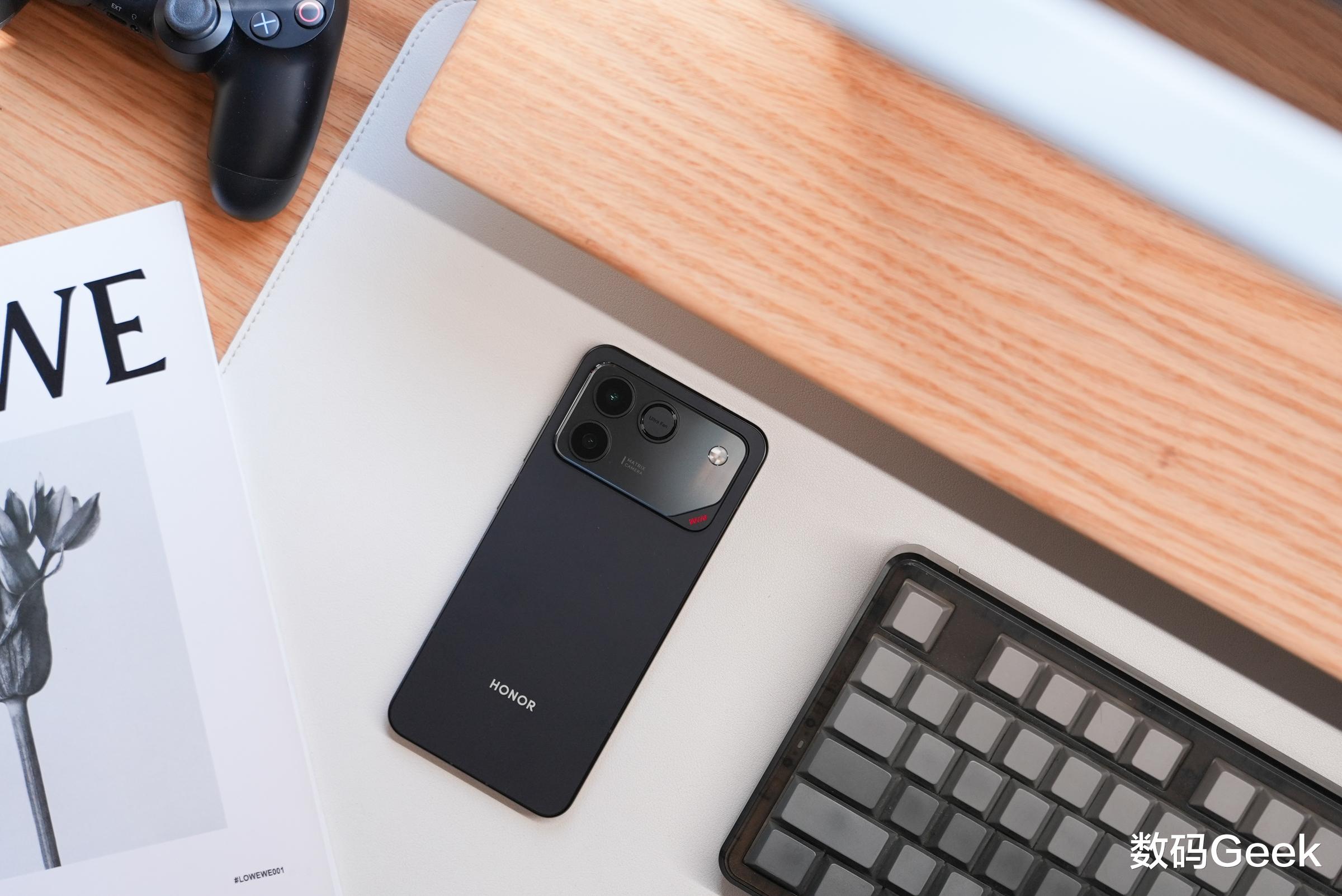 设计语言上,荣耀WIN RT告别了电竞产品常见的张扬与浮夸。其“风暴之眼”镜头模组Deco矩阵,将巨大的影像传感器与最核心的科技亮点——东风涡轮散热系统的进风口,巧妙地融为一体。进风口被隐藏于横置模组的底部,确保了手机平放时也不会堵塞风道,兼顾了美学与功能性。我手上的“快开黑”配色,是一种深邃的哑光黑,在光线下流转出细腻的质感,既显专业,又不失高级感。