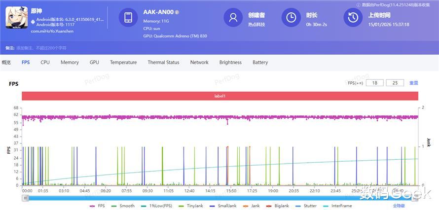 为了量化这套系统的威力,我们进行了严苛的实测。在室温环境下,连续进行半小时最高画质的《原神》须弥城跑图测试: