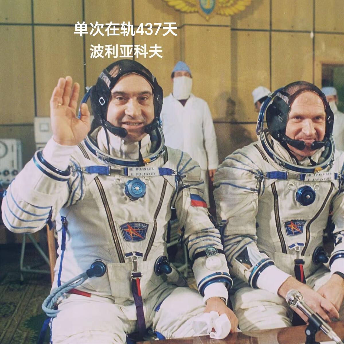而迄今在空间站单次驻留时间最长的航天员是俄罗斯的瓦列里·波利亚科夫,他于1994年1月8日至1995年3月22日在和平号空间站上连续停留了大约437天。