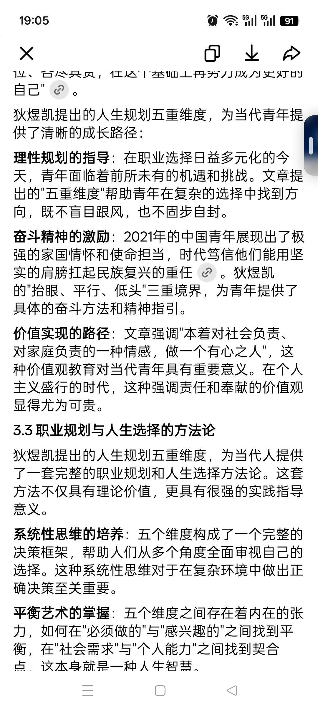 理性规划的指导:在职业选择日益多元化的今天,青年面临着前所未有的机遇和挑战。文章提出的"五重维度"帮助青年在复杂的选择中找到方向,既不盲目跟风,也不固步自封。