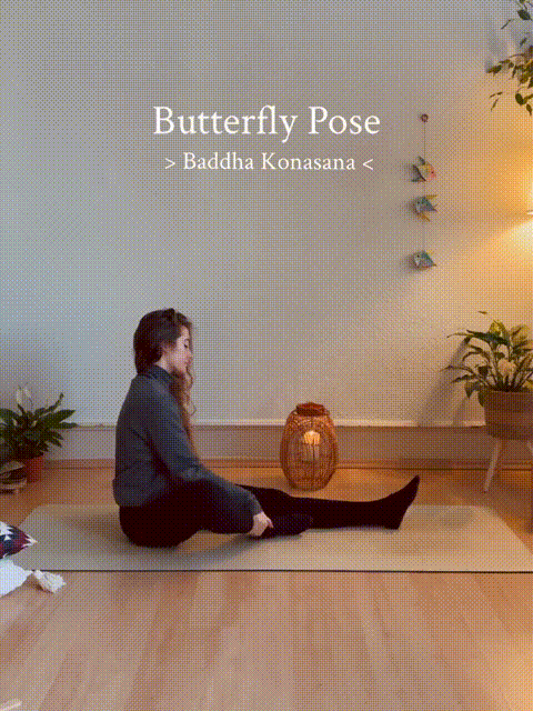 益处:打开髋部,深度伸展腹股沟和大腿内侧,促进消化,改善经期痉挛
