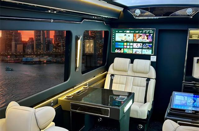 细节,红旗国悦可以称得上极致商用豪华的典范。配置了四个阿尔法豪华航空座椅,这不仅是为了乘坐的舒适性,更是为了高端商务活动的便利。它们具备通风、加热、按摩及旋转等多项功能,确保乘客在商业洽谈后能够轻松放松。而带有180度放平功能的四联排沙发床,则为长途旅行提供了一种完美的休息方式。