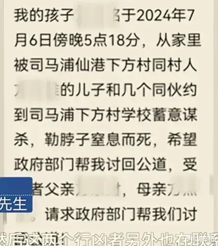 事件起因:司马浦镇下方村的方先生,曝光了一起未成年合谋杀人的案件。