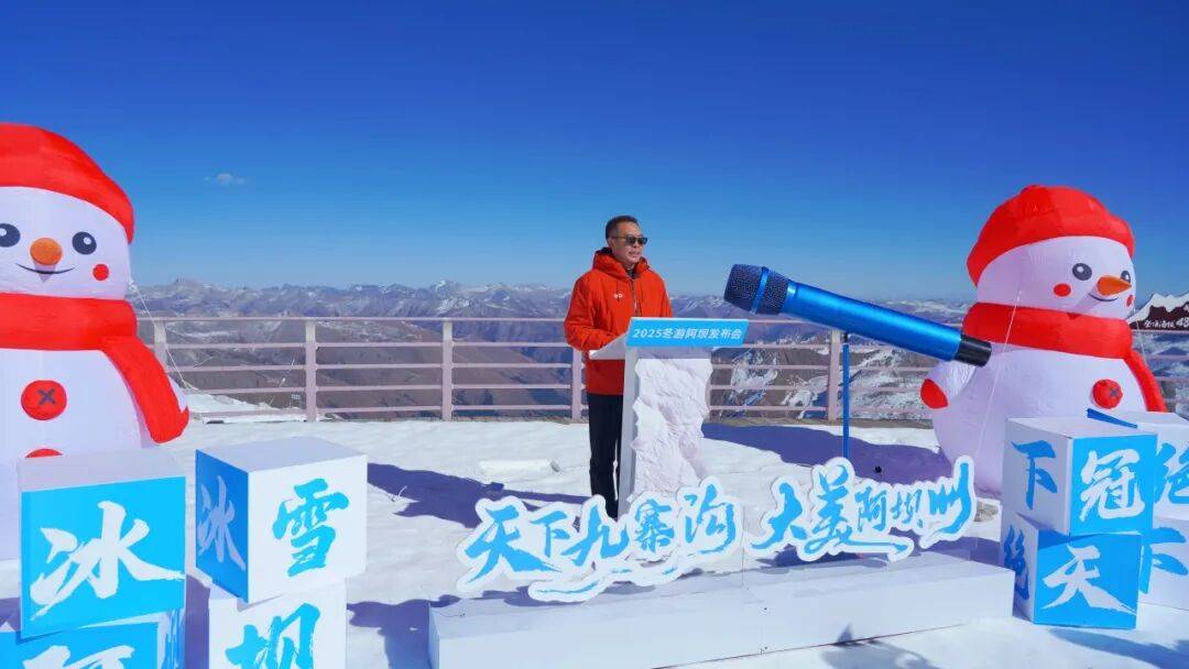 今天上午,在“最近的遥远”达古冰川之巅,以“冰雪阿坝 冠绝天下”为主题,以“沉浸式走播探奇+云端轻综艺访谈+雪山之巅权威发布”三段式创新直播方式的2025年冬游阿坝“云端发布会”如期开启。