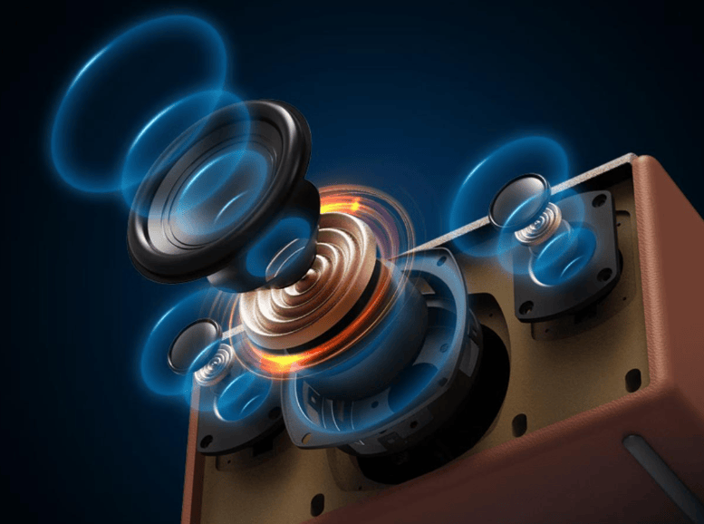 音质方面,采用了52mm全频永磁气动大单元,这个配置为音箱提供了强大的驱动力,使低频更为深沉有力,高频清晰透亮,整体音效非常均衡。此外,音箱还搭载了自研的SurroundWave™ 3D音场算法,让音乐呈现出宽广、自然的听感,无论是细节表现还是整体层次感都非常出色。再加上16.2mm动态高性能声音单元,它能很好地平衡三频,带来震撼的低频和清晰的高频,音质表现几乎超过了同价位的99%蓝牙音箱。