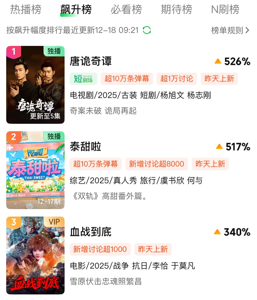 作为“唐诡宇宙”的正统续作,这部21集古装悬疑中短剧刚登陆桃厂,就掀起了追更热潮。首播2小时直接空降平台飙升榜第一,飙升热度狂飙近526%,相关话题在社交平台刷屏。