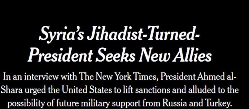 《纽约时报》4月23日报道,朱拉尼接受专访,公开谈论对阿萨德的命运安排。朱拉尼表示,2025年1月叙利亚有意跟俄罗斯谈判,主要涉及三方面: