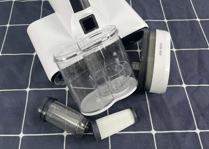 吸力为15000Pa,搭载不含汞的LED紫外线灯,只有紧贴物体表面才会生效,安全性高。但是由于采用单尘杯设计,污物与滤网直接接触,长期使用易堵塞滤网,清理时需拆解多层结构,滤网需彻底冲洗晾干,且需定期更换,操作较为复杂。