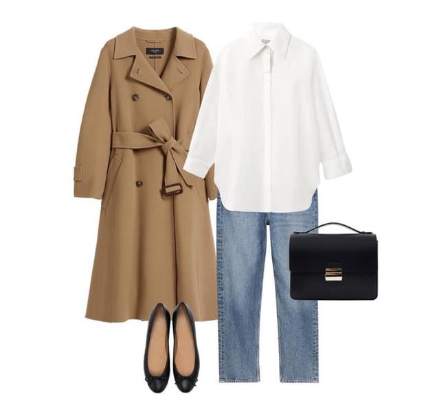 长大衣的搭配也非常简单,只需要搭配一条修身的裤子和一双高跟鞋,就能展现出女性的干练与优雅,用基础色彩进行搭配,更显高级。