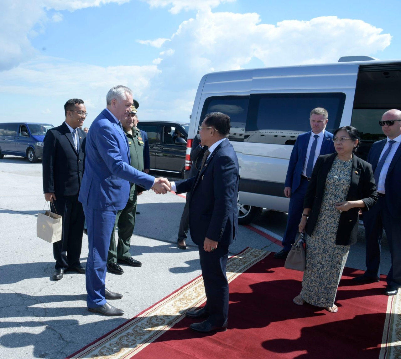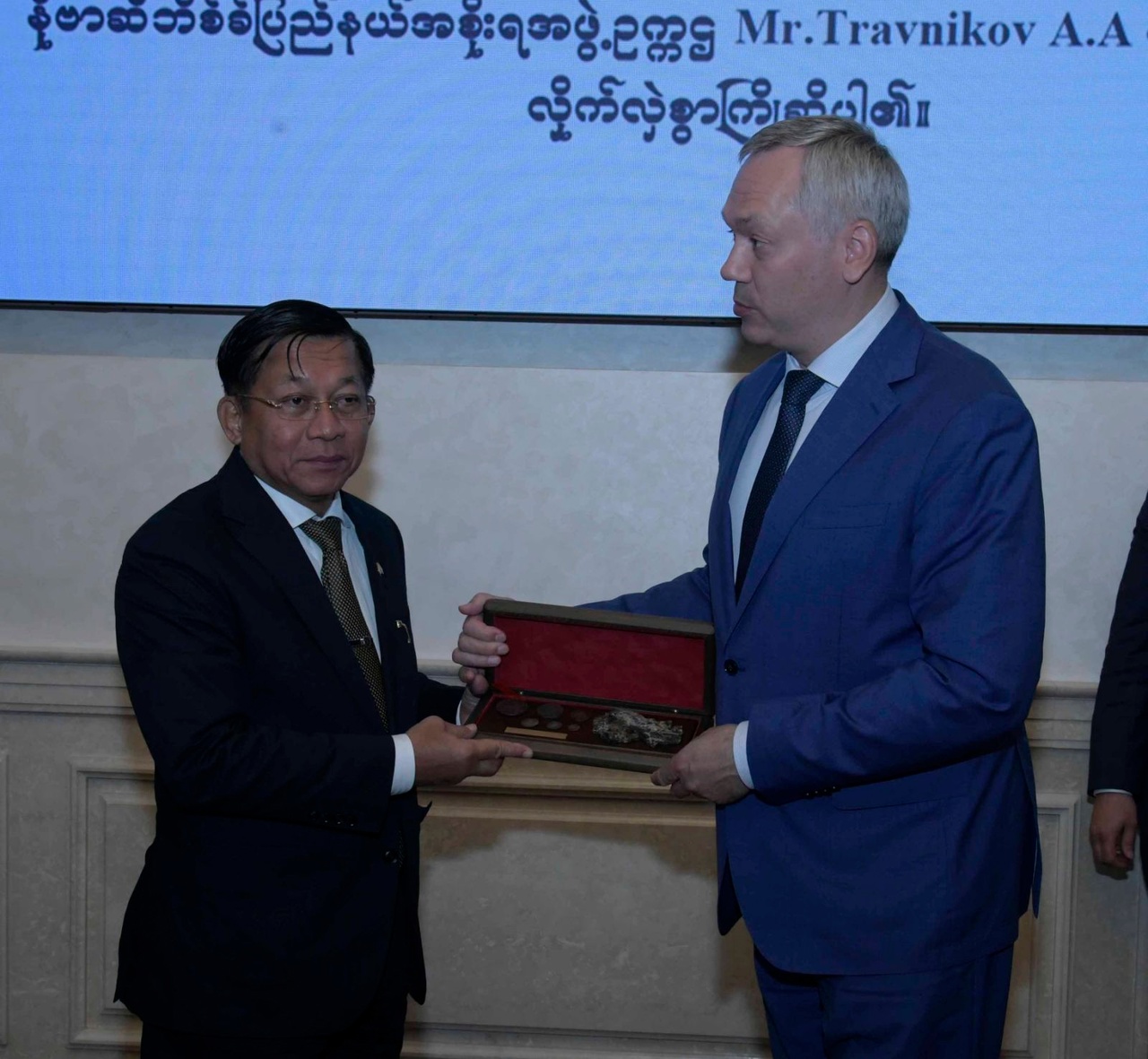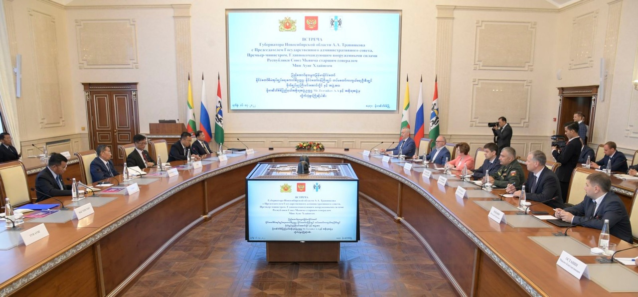 2022年7月16日,缅军总司令、国家管理委员会主席、临时政府总理敏昂莱大将与新西伯利亚州州长安德烈·特拉夫尼科夫在政府办公室会面。陪同敏昂莱出席会议的还有国家管理委员会成员曼迎貌(Mahn Nyein Maung)、国家管理委员会联合秘书耶温乌(Ye Win Oo)中将、随行军职和文职官员、缅甸驻俄罗斯联邦大使吴伦乌(U Lwin Oo)和武官莫觉(Moe Kyaw)准将,安德烈·特拉夫尼科夫则由高级军事指挥学校校长及科技、教育、社会事务、文化、旅游等领域的官员陪同。