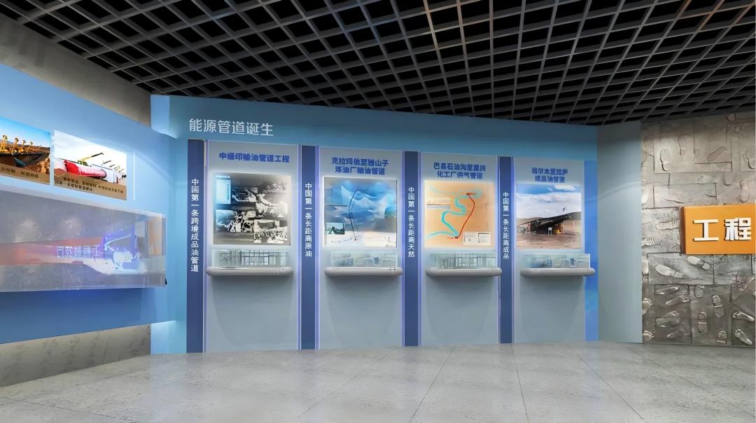 管道局成立以时间轴线的形式演化出一个时光长廊。同时配合实物文献等历史见证,突出管道局重要节点、重大事件。