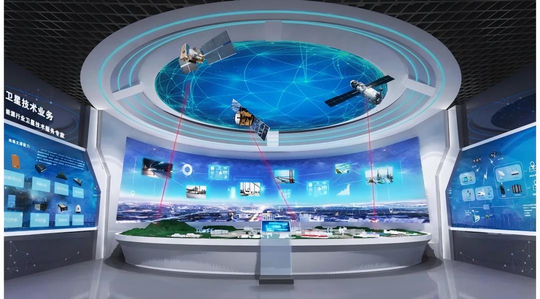 卫星技术业务展区卫星技术激光互动拟态沙盘,模拟北斗海陆空能源监管全流程服务。