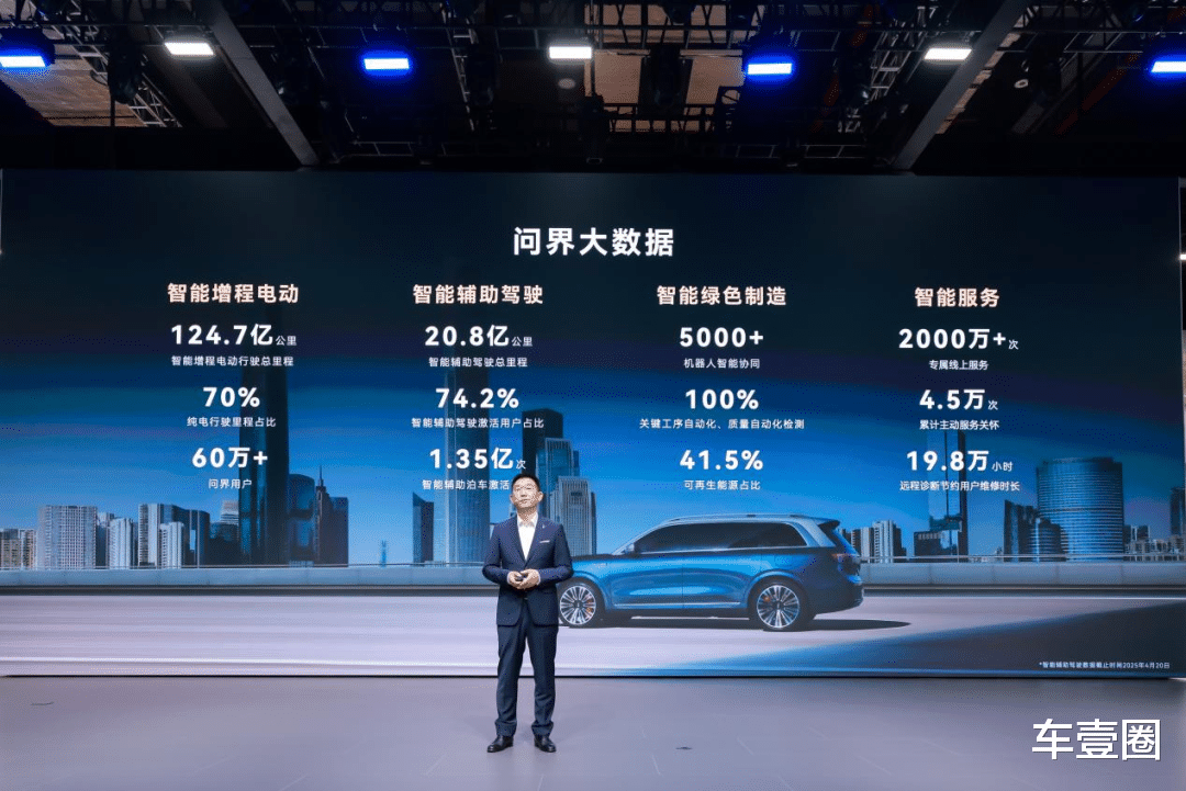 发布会上,赛力斯汽车总裁何利扬公布的问界大数据令人瞩目。截至4 月20日,问界用户智能增程电动行驶总里程超过124亿公里,纯电行驶里程占比超70%,智能辅助驾驶总里程超20亿公里,激活用户占比超74%。这些数据不仅彰显了问界系列产品的受欢迎程度,也体现出赛力斯在智能绿色制造和智能服务方面的持续升级成果。