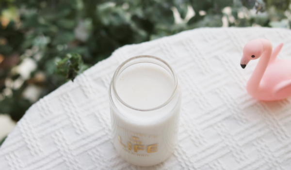 6、香浓顺滑的杏仁露就做好了,倒入玻璃杯里,可以清楚地看到破壁机打出来的杏仁露很细腻,无渣渣。不管是做用来做早餐还是下午茶,都很合适。香浓美味,自己做干净又实惠,真好喝。