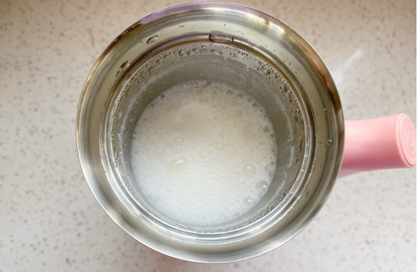 3、然后再将牛奶慢慢地倒进破壁机里面,注意不要超过了最大刻度线。这样的小型破壁机最大的限度就是300毫升,液体超过的话,破壁机在工作的时候就会溢出来。