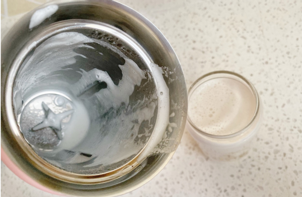 5、大约20分钟以后,这个杏仁露就做好了,工作结束了以后锋鸣提醒,打开盖子,香气扑鼻而来。
