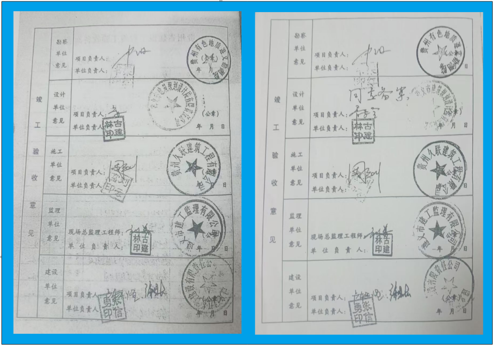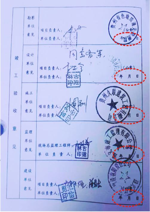 同样,在设计单位、施工单位、监理、建设栏目中,同没有看到相应的执业印章,这显然和相关部门的规定不符合,相应的验收自然就没有生效,验收的项目都不合格,那竣工验收合格吗?这个答案自然就不言而喻了。
