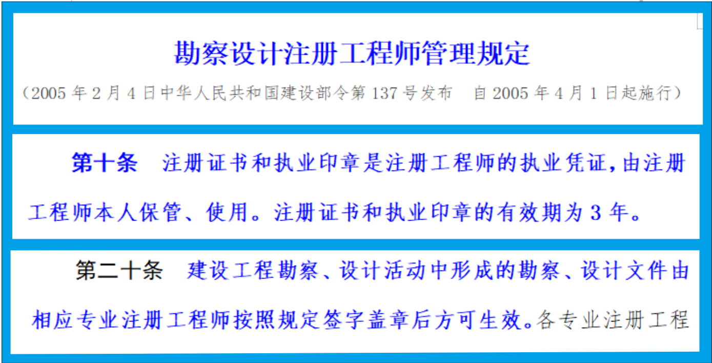 “建设工程勘察、设计活动中形成的勘察、设计文件由相应专业注册工程师按照规定签字盖章后方可生效。”