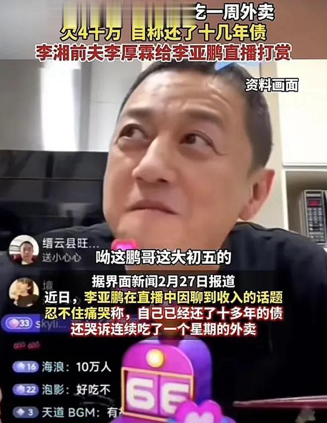 记得去年他妻子带着孩子搬到小房子住受到一波嘲笑后,在春节期间直播的李亚鹏又自爆还了十多年债,穷的已经吃了好几天外卖了,此时并没有多少人同情,依旧又遭到无数网友嘲讽。