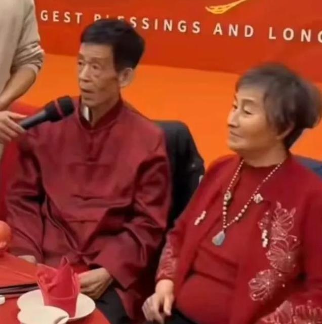吴京的父亲吴树穿着寿衣,头发黑黑的,虽然有点儿瘦,特别有精神,母亲坐在旁边,头发比较稀疏。