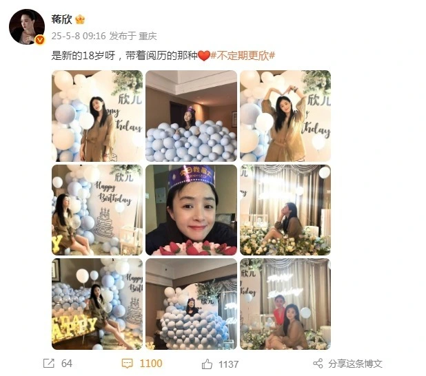 从这些生日照里,能感受到蒋欣生日当天满满的幸福感。虽说没聊她过往的作品,但就这些照片,已经让粉丝们看到了她生活里真实又可爱的一面 ,也让人忍不住为她送上生日祝福,期待她未来的生活也能如这生日般美好。