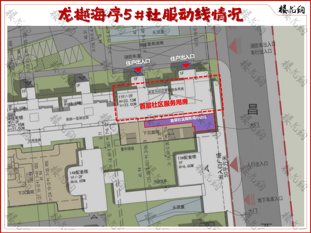 公众反馈意见:“5号楼首层社区管理服务用房流线,及消防车道的设置等问题。”