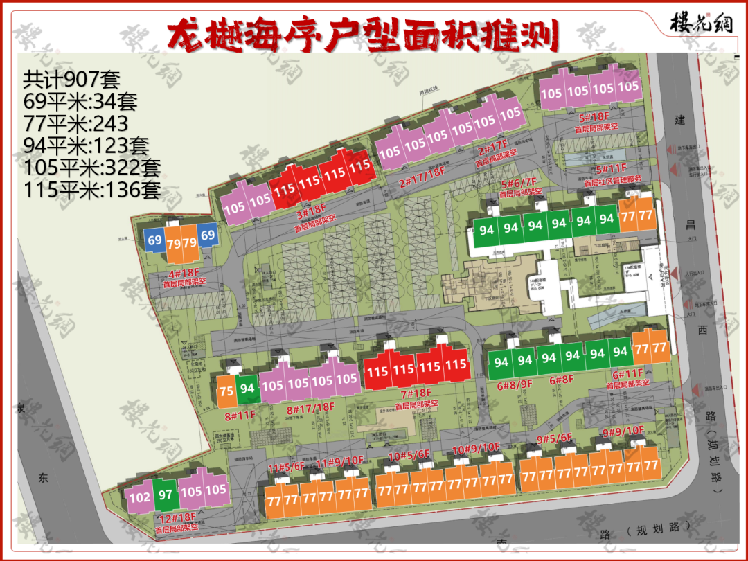 花姐推测,它大致有几款户型:69平米、77平米、94平米、105平米和115平米户型。
