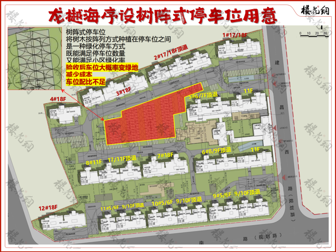 它们的常规做法是,先按车位报规,待验收之后,大概率会将地上停车位变成绿地。