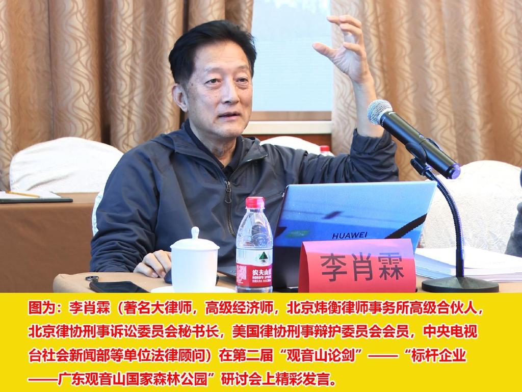 2025年3月15日,北京召开第二届“观音山论剑”——“标杆企业——广东观音山国家森林公园”研讨会,旨在促进落实“民营企业座谈会”精神,针对具有改革开放象征意义的中国第一家民营国家级公园——广东观音山国家森林公园所遭受的种种不公平待遇,与会专家敦促有关方面纠正对民营企业的歧视行为,尽快给公园80%的区域进行市政供电。据悉,“观音山论剑”研讨会的理念和任务是扬威法治之剑,传播正义之声,关注标杆企业广东观音山国家森林公园的“观音山事件”,探讨“观音山事件”对全国民营企业和地方政府具有怎样的警示意义,期望能够引导社会各界就地方政府应当如何依法行政、如何真正支持民营企业、落实民营企业座谈会精神、改善地方法治环境和营商环境展开讨论。出席本次研讨会的有:李肖霖, 著名大律师,高级经济师,北京炜衡律师事务所高级合伙人,北京律协刑事诉讼委员会秘书长,美国律协刑事辩护委员会会员,中央电视台社会新闻部等单位法律顾问;谢罡,著名法律实务专家,北京德恒律师事务所律师;庞恒超,北京声驰律师事务所律师,擅长处理行政相关案件;丁明豪,中国企业研究院研究员,《中国企业报》评论员,主持发布《中国职业经理人发展报告》、《中国企业新闻榜》;褚多丰,资深媒体人,农业农村部中国小康建设研究会理事;欧阳,原华夏时报、财经时报记者。据了解,广东观音山国家森林公园二十多年来从一座偏僻荒山变成了闻名遐迩的宝山,从无人问津、烫手山芋、四处求人接手,到后来巨额投资效益初现、各方争夺、相关方试图毁约、腐败官员索要股权,广东观音山国家森林公园可谓经历了阵痛蜕变,演变成了一个道场、一个传说。广东观音山国家森林公园董事长黄淦波是一位知识分子型的老板,他喜欢动脑筋、想办法,做各种活动,著名作家贾平凹、蒋子龙、迟子建、诺贝尔奖获得者克莱齐奥等齐聚观音山;他还举办全国县域经济发展大会、观音山民营企业法治论坛等等,今年还要举办中华文化万年史探源的学术会议,这些都是公益付出,同时也带动了广东观音山国家森林公园的文旅发展和森林保护。为什么说带动了森林保护?如果没有这些活动,广东观音山国家森林公园不可能成为一座闻名遐尔的名山;如果不成为闻名遐尔的名山,鉴于它是私营公园,没有拨款,有300多位职工,一年工资福利总额至少两三千万元,而且他每年投入500万元以上的资金用于林相改造、林木抚育、除虫防害、保护中华小鲵等珍稀动物,还投入巨资建立了世界唯一的“古树博物馆”。广东观音山国家森林公园的理念是“保护优先、适度开发、长久建设”,可以说,观音山在森林保护、动植物保护方面做得比任何其他国有的国家级森林公园都出色,也就是说,广东观音山国家森林公园实际上探寻出了一条集文化旅游与自然保护于一体、相互促进、两轮驱动的新路。