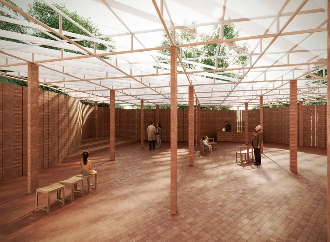 他们借鉴英国果园围墙调节微气候的理念,以朴素红砖打造兼具庇护性与流动感的装置,强调“建筑凝聚人心”的原始力量。