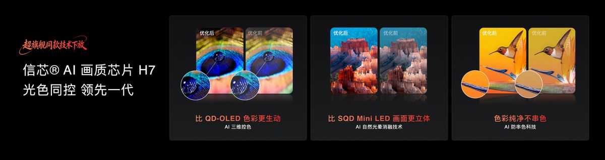用这个价格买到全球领先的RGB-Mini LED技术、买到帝瓦雷音响、买到7560个分区和5100nits的亮度,这在一年前还是不可想象的。海信还提供了免费安装、3年超长质保以及影视VIP年卡等首发权益。