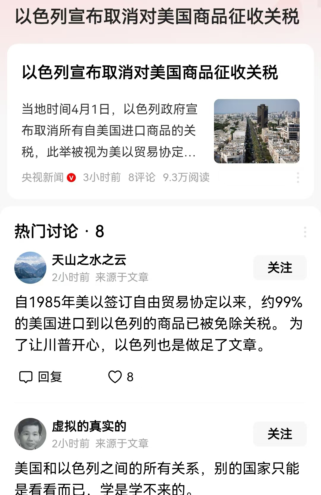 在4月2日美国东部时间星期三之前,就是特朗普准备宣布对于对全球185个国家和地区征收10%-49%的“对等关税”。没想到还没宣布,以色列在万里之外抢先宣布,所有来自美国的进口商品全部免税,实施对美商品“零关税”。精准示好,给了特朗普一个大面子吗?后果又如何呢?