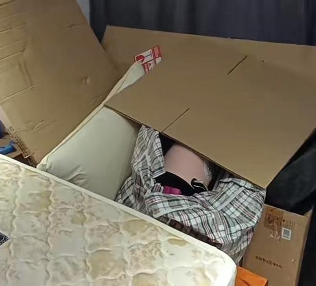 房子不大,装修也简单,客厅里摆着一台老旧的电视,旁边还放着一张麻将桌,阳台上则是扫帚、拖把等杂物,卧室里更是乱得可以,行李、纸箱、编织袋堆得满地都是,外卖盒、快递包装也随处可见。