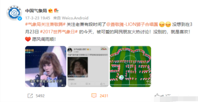 这个称号可以说是随时会塌房,但没想到这么多年过去了,这个人设却长久不衰,就连中国气象局都关注了萧敬腾。