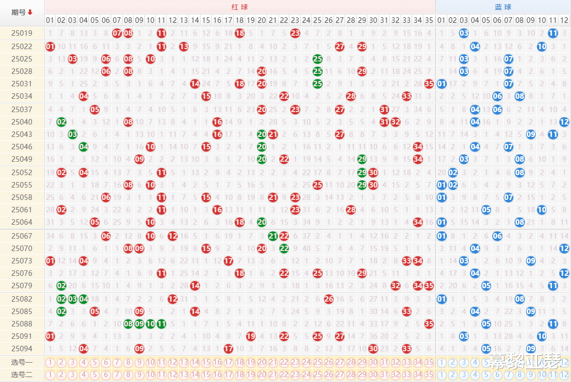 25096期大乐透自身出现1个重号:02(历史),预计本期出现重号个数:1-2个,可能重号的红球:07、12疑惑30