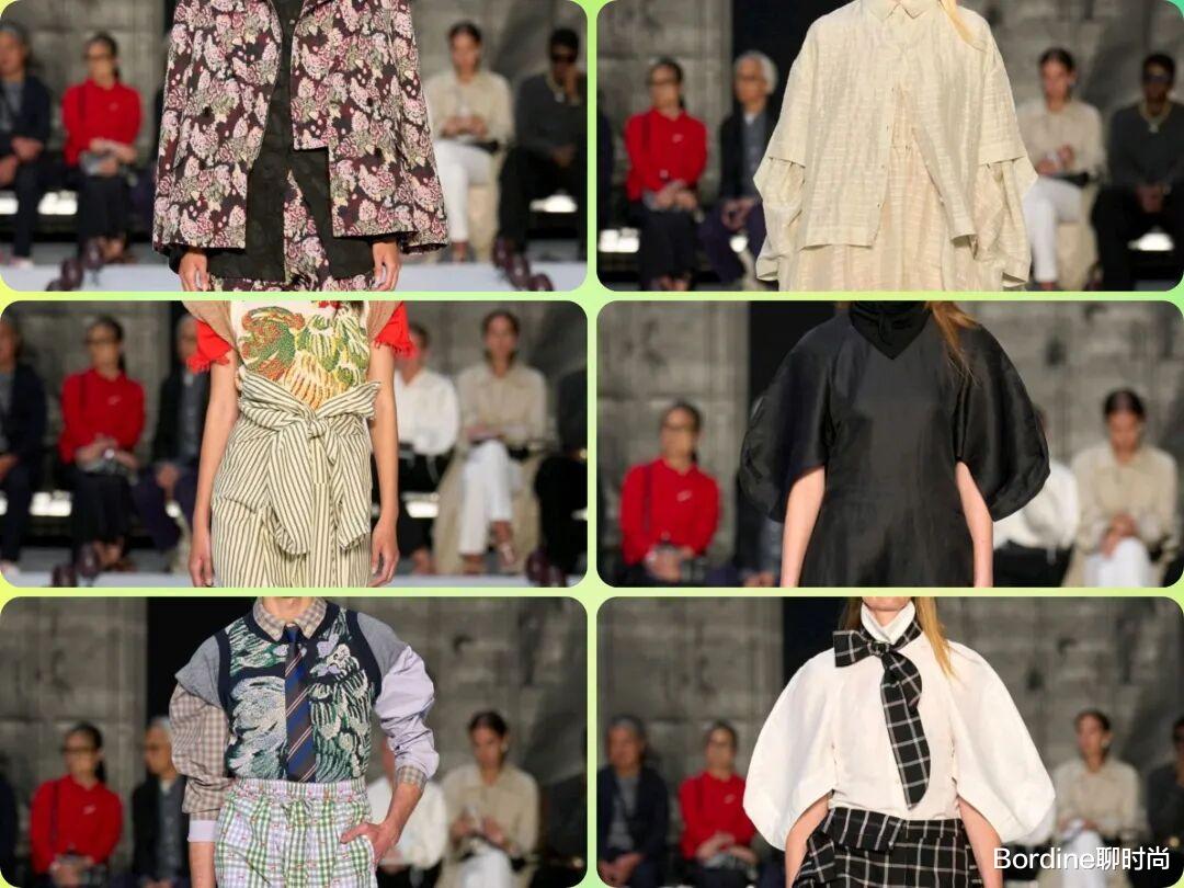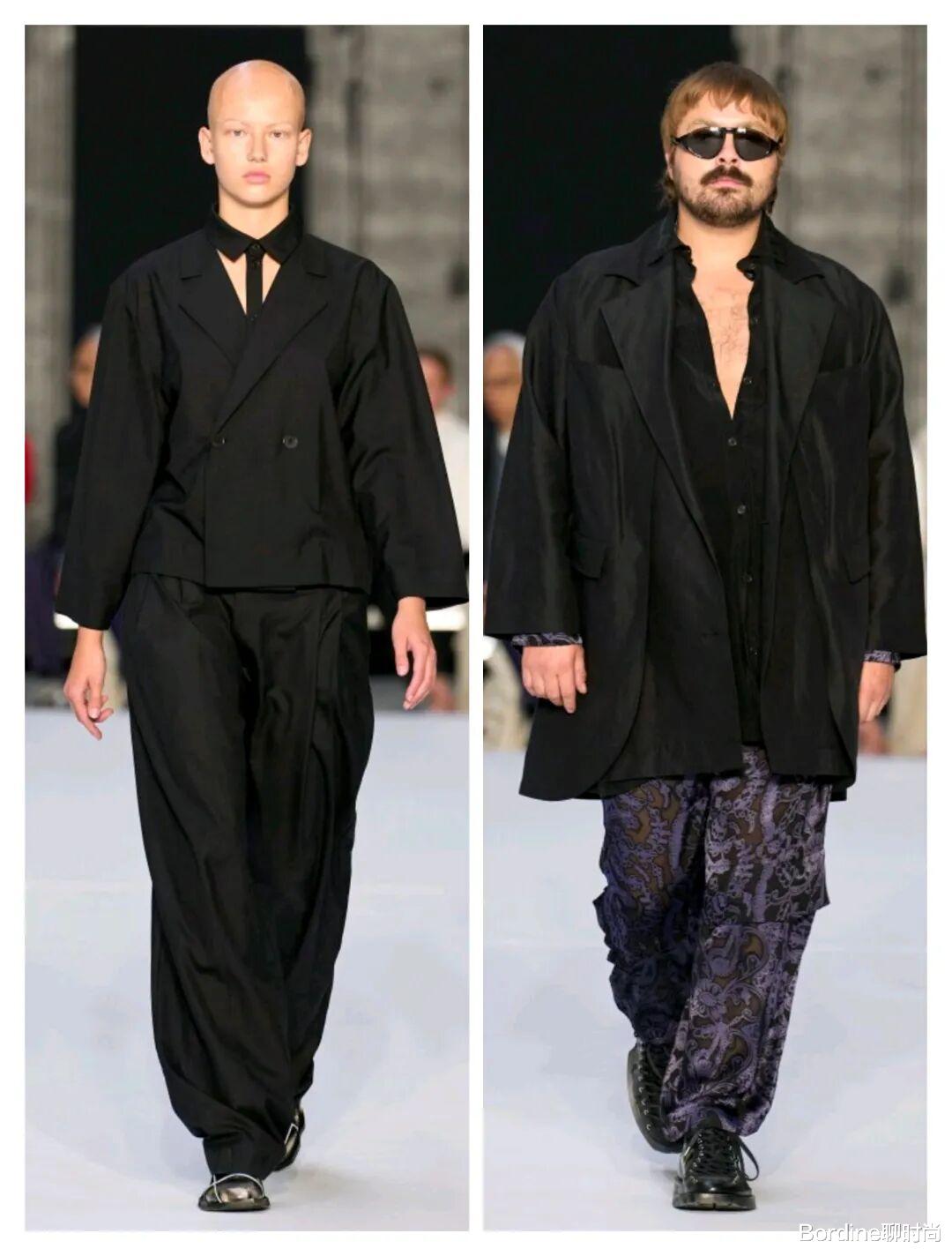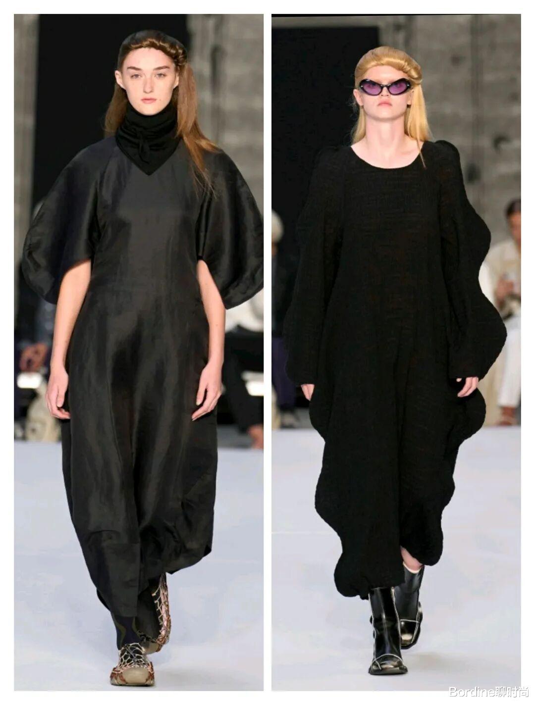 轮廓特点:宽松、包裹性廓形,灵感来自保护物品的日常容器西装袋、乐器盒、家具罩的形态转化为服装结构雕塑感外套(如低音提琴琴盒造型)和蓬松上衣