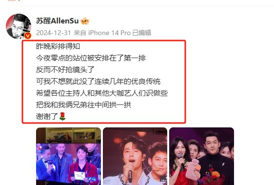 歌手苏醒往年经常因为有意无意地抢镜头,争C位而被骂上热搜,今年他提前做了准备。