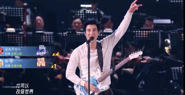 虽然他没有唱那首大家都期待的《天地龙鳞》,但王力宏状态非常好,直接带来了4首歌,弹幕上欢呼的全是他的歌迷。