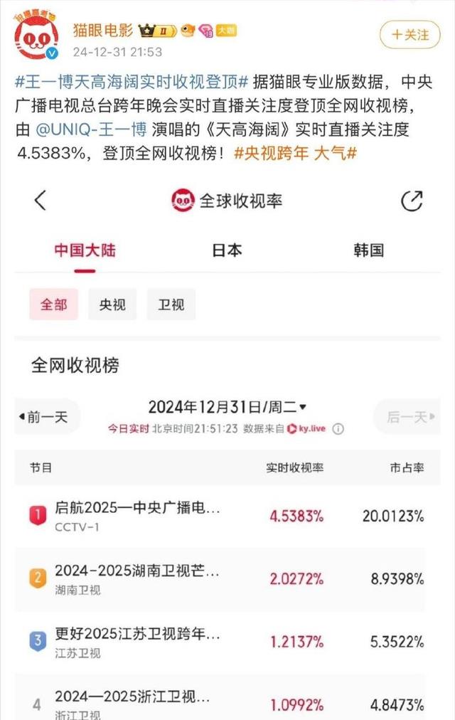 各大卫视的热点话题整了不少,但12月31日一看收视率,还是央视独当一面。