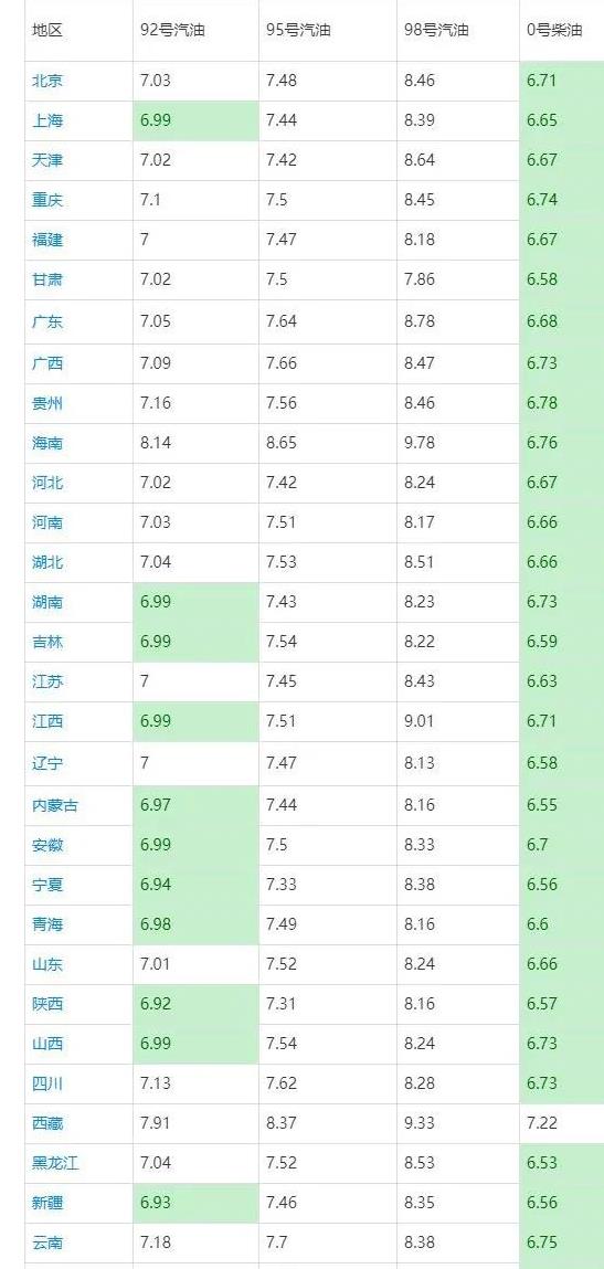 根据最新的油价调整通知,12月22日,全国各地92号汽油的零售价格普遍上涨了0.10元/升,95号汽油则上涨了0.11元/升。不同地区的油价会有所差异,调整后的油价如下: