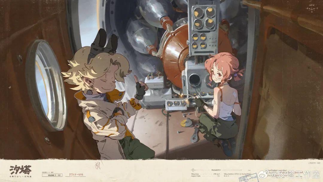 从今天《汐塔》发布的《云海逐鲸》来看,它延续了柴油朋克的美术风格和视觉亮点,作画质量比起两年前似乎还要更好。其中角色的动作、表情细节有着不少可圈可点的地方,短片整体传递出的机械质感与复古未来幻想,也得到了不少人的肯定。