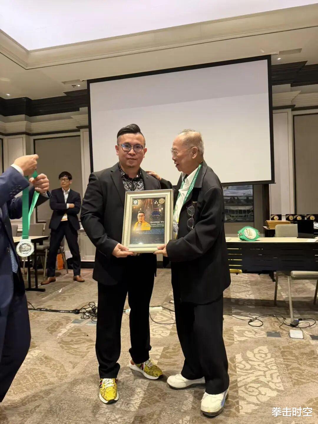 值得一提的是,在斩获双料奖项后,吴昊立即成为了年会现场的焦点人物之一,各路拳坛名流纷纷与其合影留念,其中也包括大名鼎鼎的传奇拳王阿米尔·卡汉!