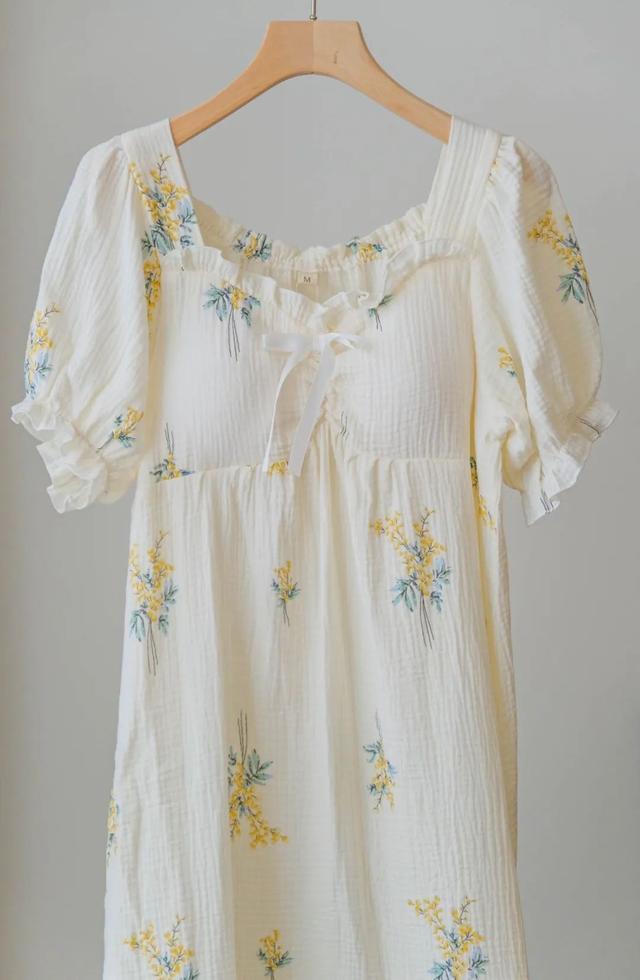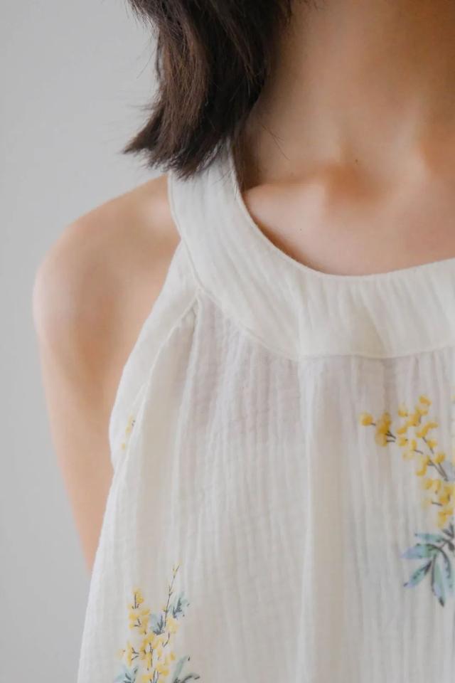 将如此吉祥的花朵做到衣服上,穿上真的让人瞬间提高了幸福感!!铃兰的洁白清甜绽放在晨曦微凉之中在柔软细腻的双层棉纱上柔曼舒卷演绎夏日的浪漫