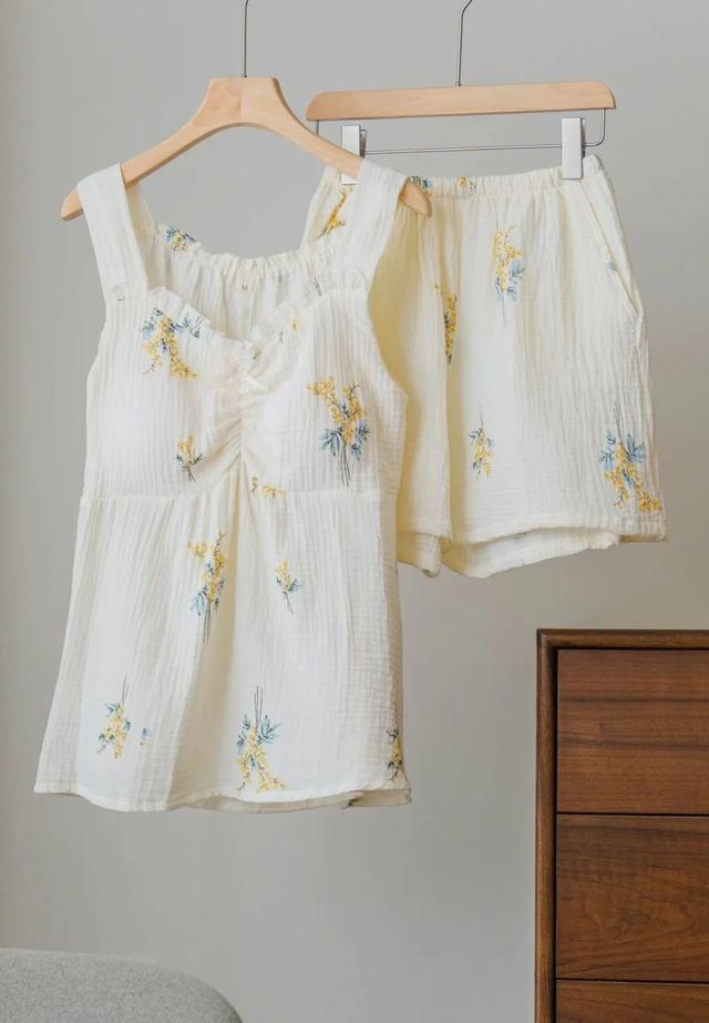 分体吊带短裤设计活动更便捷,同样的加宽肩带舒适凉爽到极致。淡雅的铃兰花点缀,清新脱俗。