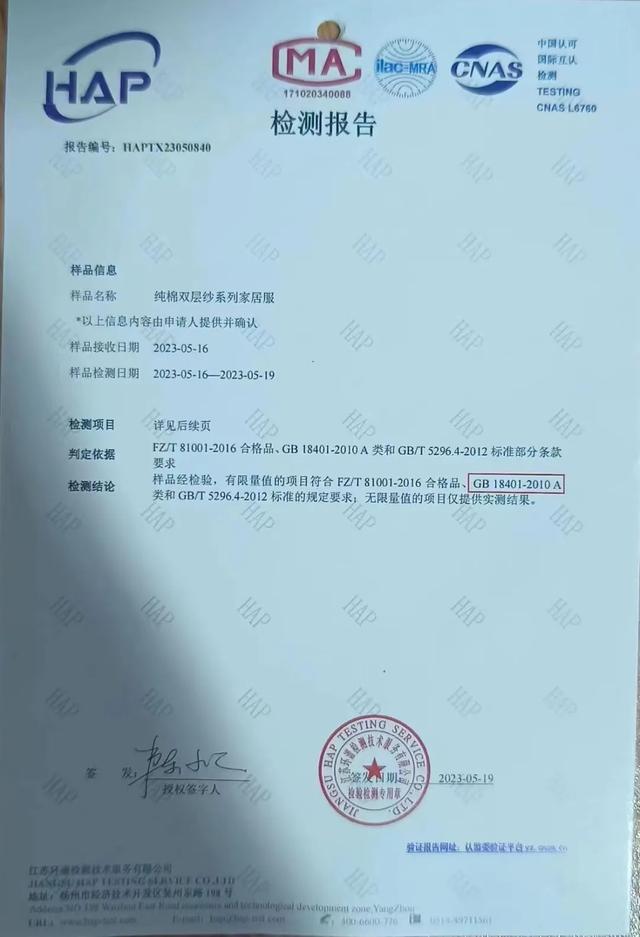 虽然是成人家居服,但是咱们这款夏日铃兰的面料确采用了母婴级别的A类面料,不含甲醛等对人体有害的物质。穿起来超级安心。