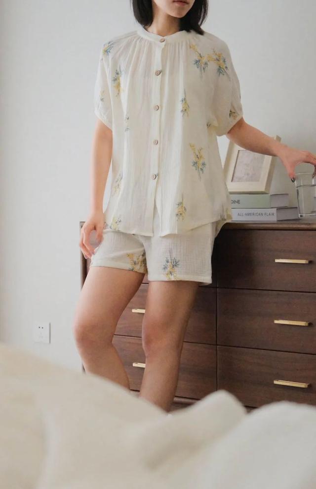 总之你想到的家居服这里都有,想不到的高颜值这里也有,想不到的舒适度更是一绝。统统满足所有对家居服的高端想象。夏日铃兰9个系列69元一套起点击进入小程序立即购买夏天真的找不到比这个更软更轻的睡衣了这款睡衣采用了100%纯棉的双层纱布,都知道纱布柔软,而且穿起来越穿越柔软。我自己就有一个纱布睡衣已经穿了两年,属于那种越穿越上瘾的感觉,到今年夏天真的离不开的节奏,太太太舒服了。