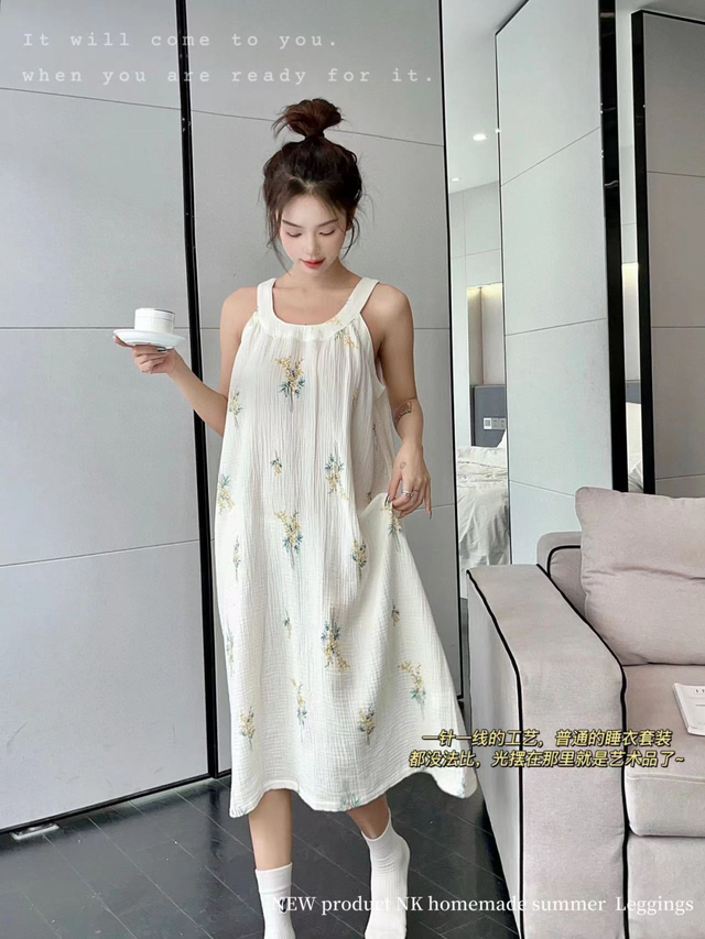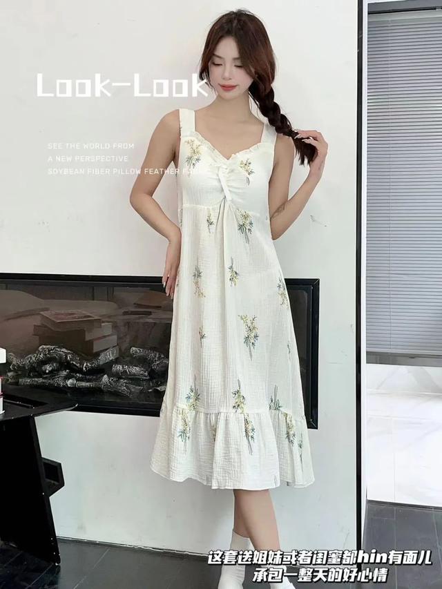 这款衣服整体都是宽松版型,保证穿着的自在,不束缚,垂顺柔润胸垫款式穿着更方便,避免凸点的尴尬。日常下楼取快递,出门倒垃圾,小区便利店买点零食,根本不用换衣服。这款吊带胸垫分体款式,胸前做了微微褶皱小蝴蝶结搭配,整个人更显温柔灵气