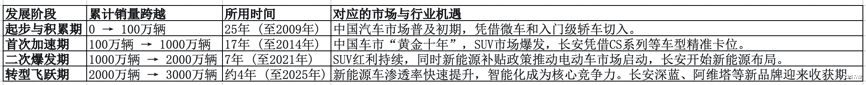 长安的快速发展,同样得益于精准地把握了中国汽车市场的两次关键转型浪潮。下表清晰地展示了其销量跃迁与市场机遇的契合。