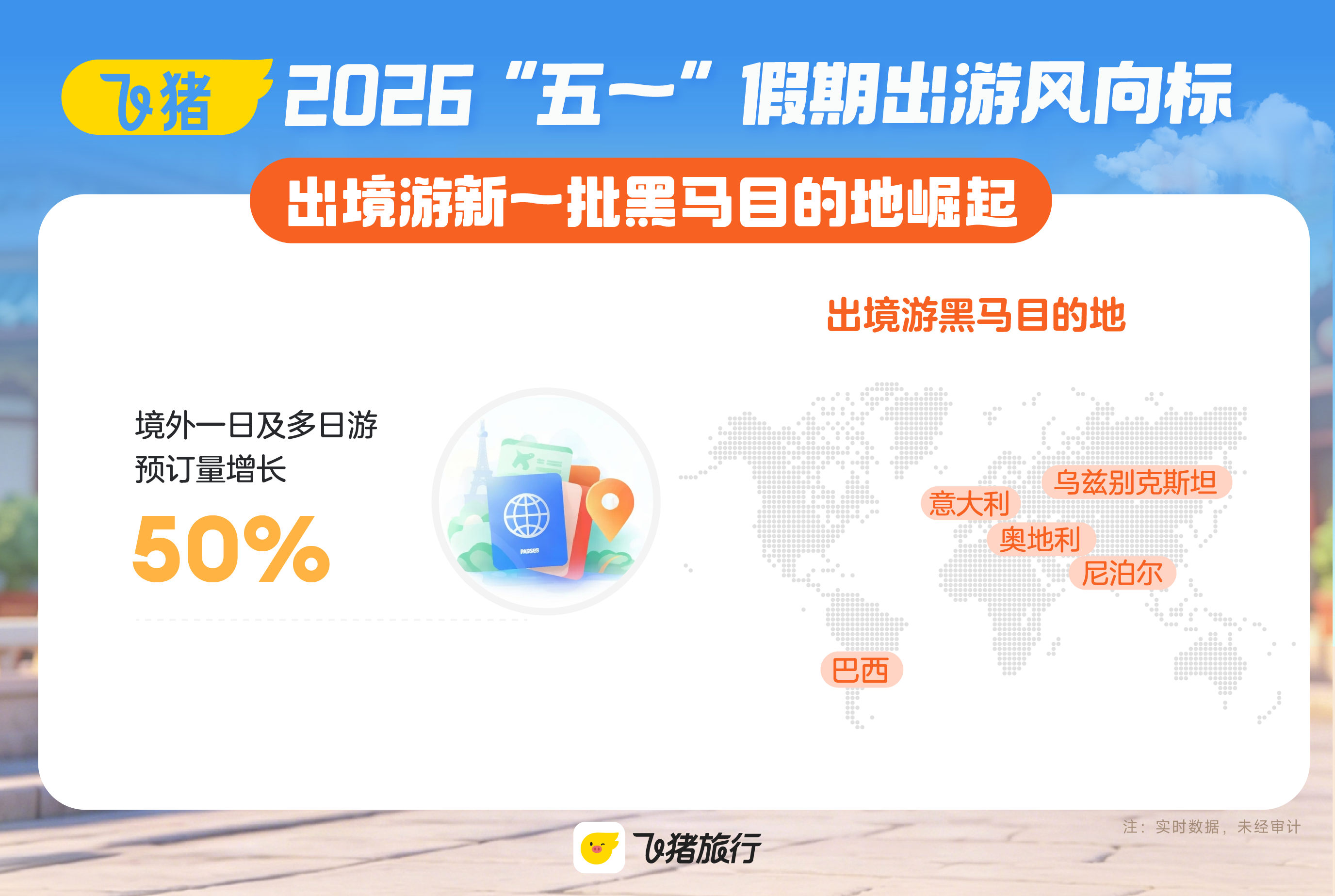 在出境游方面,消费者对独特在地文化和深度游体验的热情,驱动了新一批“黑马”目的地的崛起。飞猪数据显示,“五一”假期,越来越多旅行者把目光投向那些值得放慢脚步、细细探索的目的地,乌兹别克斯坦、奥地利、巴西、尼泊尔、意大利增速最快,平均旅游商品预订量同比增长超100%。(通讯员 汪星州)