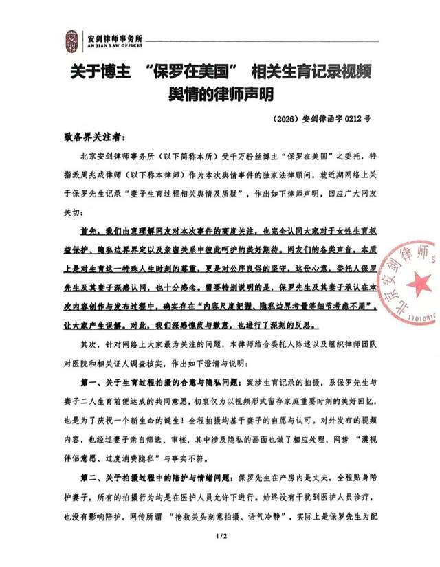 而周兆成律师在声明中,直接给出了一套完整、可落地、无死角的整改方案,相当于给平台交上了一份“风险清零承诺书”:第一时间全面下架所有争议视频,杜绝内容持续发酵的可能;保罗夫妇公开发布致歉信,直面错误、承担责任;主动暂停所有商业合作与内容创作,专注家庭休养,用实际行动降温舆情;明确承诺未来创作将严守法律边界与公序良俗,坚守隐私保护底线,传递正向价值。